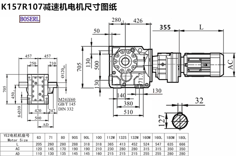 | K157R107減速機(jī) | K157RF107D200L4 | K157R107DT180LC4 | K157RF107YB200L4 |