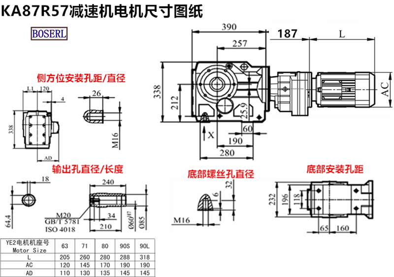 KA87R57DRN80M4_KA87R57DM90M4_KA87R57DVE63M4_KA87R57DR71M4減速機電機型號大全